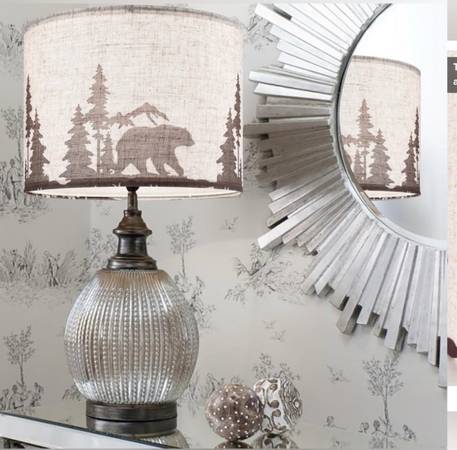 GO&SO Drum Lampshades Set of 2 Medium Beige Bear & Deer Lamp Shades for Table Lamps -13" Top x 13" Bottom x 10" High (Spider) Vintage Replacement Lampshade Printed Natural Linen Required...