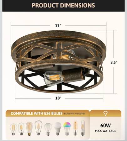 VONLUCE Flush Mount Ceiling Lights, 2-Light Hallway Ceiling Lighting Fixtures, 11 inch Farmhouse Metal Cage Ceiling Lights for Entryway Kitchen, Adjustable Lamp Holders, ETL, 2 pcs, Oil-Rubbed Bronze
