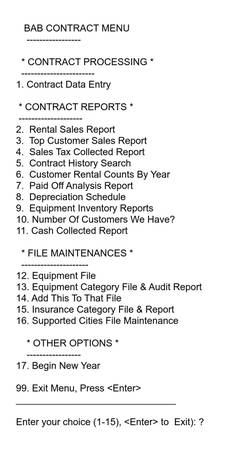 Comprehensive Reporting System as indicated by the Menu shown i Images. All options shown work as developed.