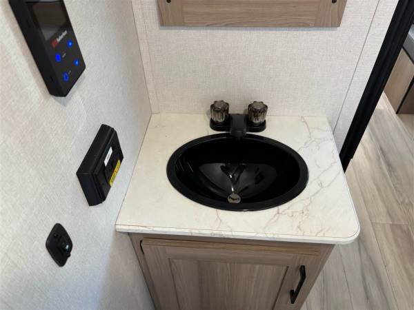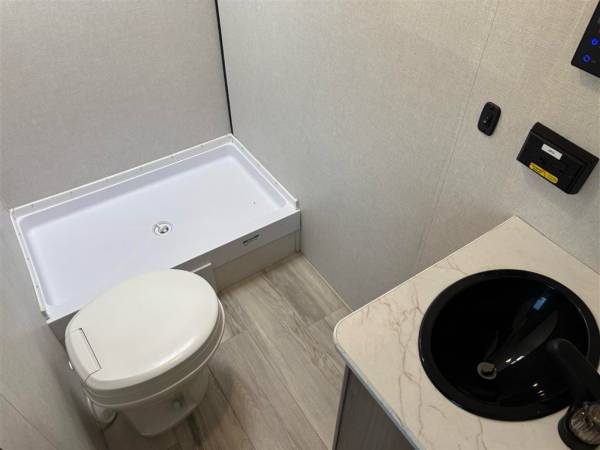 Instant hot water heater, two propane tanks, battery, air conditioner, sleeps 8 (4 with room and comfort) indoor and outdoor shower. Fridge, microwave, sink, walkable roof… all the bells and whistles.